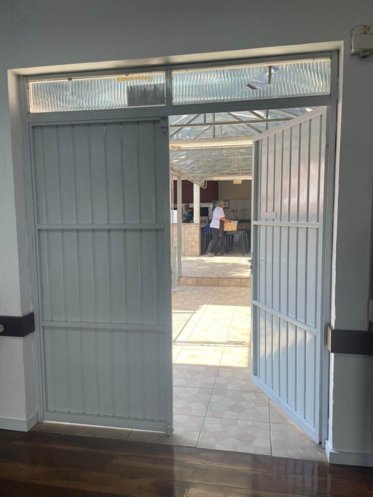 Também foram realizadas melhorias estruturais importantes, como a reforma dos corrimões e do guarda-corpo, pintura de portas, janelas e corrimãos, além da fixação do forro de PVC. Na parte frontal do prédio, as duas janelas antigas do salão foram removidas e substituídas por novas janelas de alumínio branco com vidro laminado incolor de 6 mm, acompanhadas da fabricação e instalação de grades de segurança. Houve ainda a reforma do espelho da caixa do telhado nos fundos do salão.