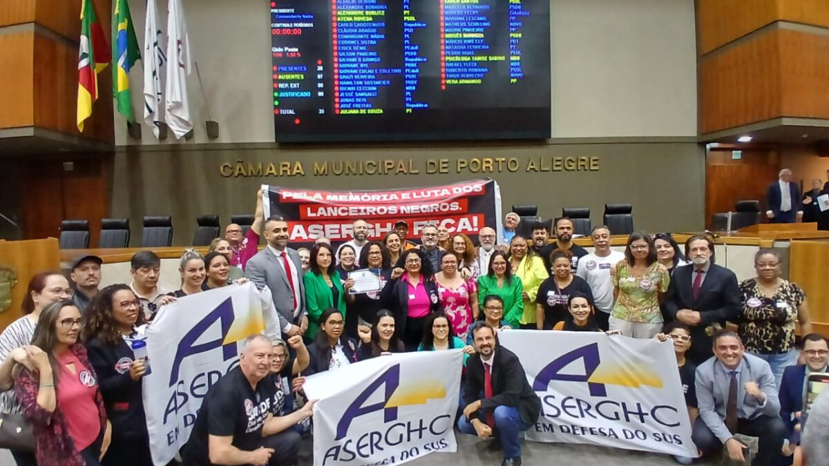 A Aserghc foi homenageada, nesta segunda-feira (13), na Câmara Municipal de Vereadores de Porto Alegre, por seus quase 50 anos de trabalho de defesa e assistência aos trabalhadores do Grupo Hospitalar Conceição (GHC). A honraria foi proposição do vereador Roberto Robaina (PSol), que acompanha a luta da Associação há muitos anos e em várias ocasiões se somou às pautas. Ele salientou que a Aserghc faz parte da própria defesa do SUS, da saúde pública e dos direitos dos trabalhadores do GHC. “Fortalecer uma associação combativa como essa é o único caminho que nós temos para efetivamente conquistar a emancipação da classe trabalhadora. Os trabalhadores necessitam defender seus interesses independes de governos. Aqueles comprometidos com a causa da saúde têm de estar ao lado dos trabalhadores”, declarou.